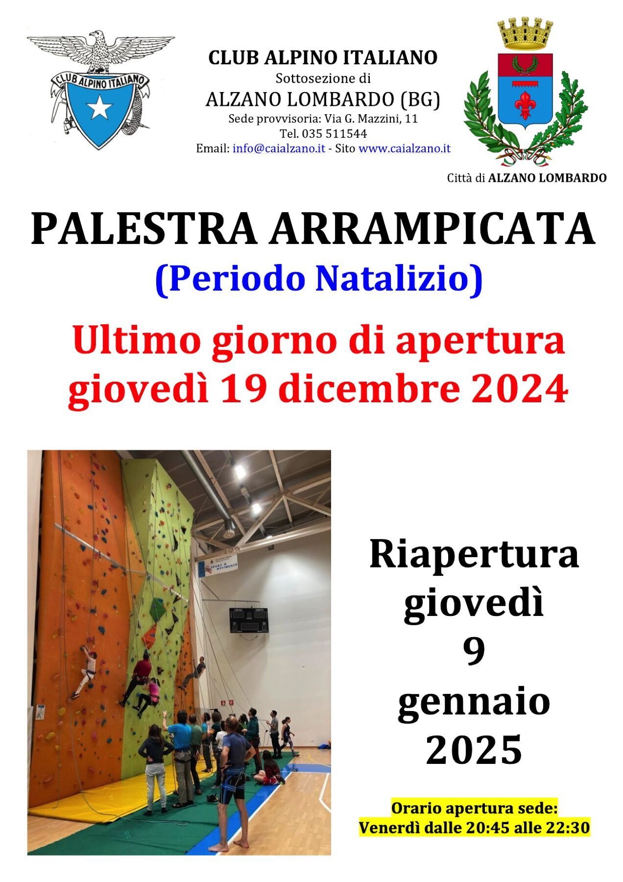 Palestra di arrampicata chiusura periodo natalizio